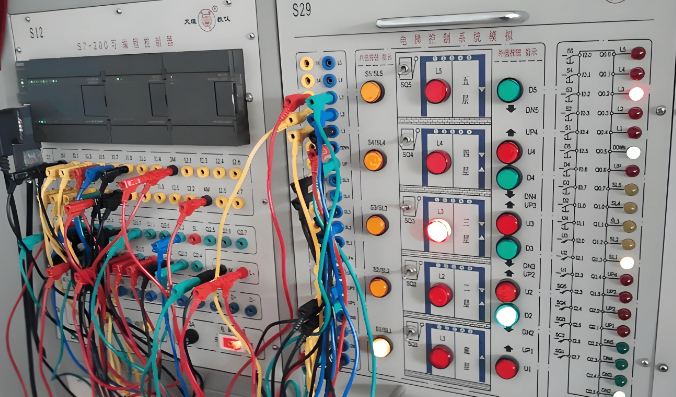 在电梯井道内安装传感器、指示灯等输出设备,并连接至PLC。